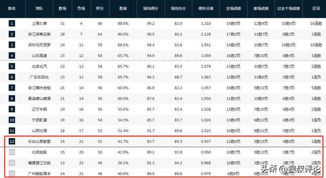 若是不出意外的话,积分榜第12名将会在北控,吉林,福建,广州之间产生。