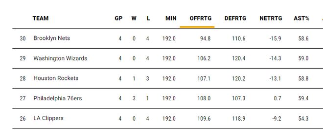 快船这一波四连败,进攻效率109.6联盟倒数第四,防守效率118.9联盟倒数第十,净效率值-9.2联盟倒数第七,快船队真是一夜回到解放前。
