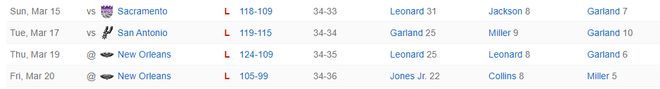 快船吞下了一波四连败:国王、马刺、两次鹈鹕,要知道国王、鹈鹕都已经是摆烂的球队,快船也因为这一波四连败战绩34胜36负被开拓者追平胜场差,小卡对阵国王、鹈鹕一番战都出场了可就是无法取得胜利。